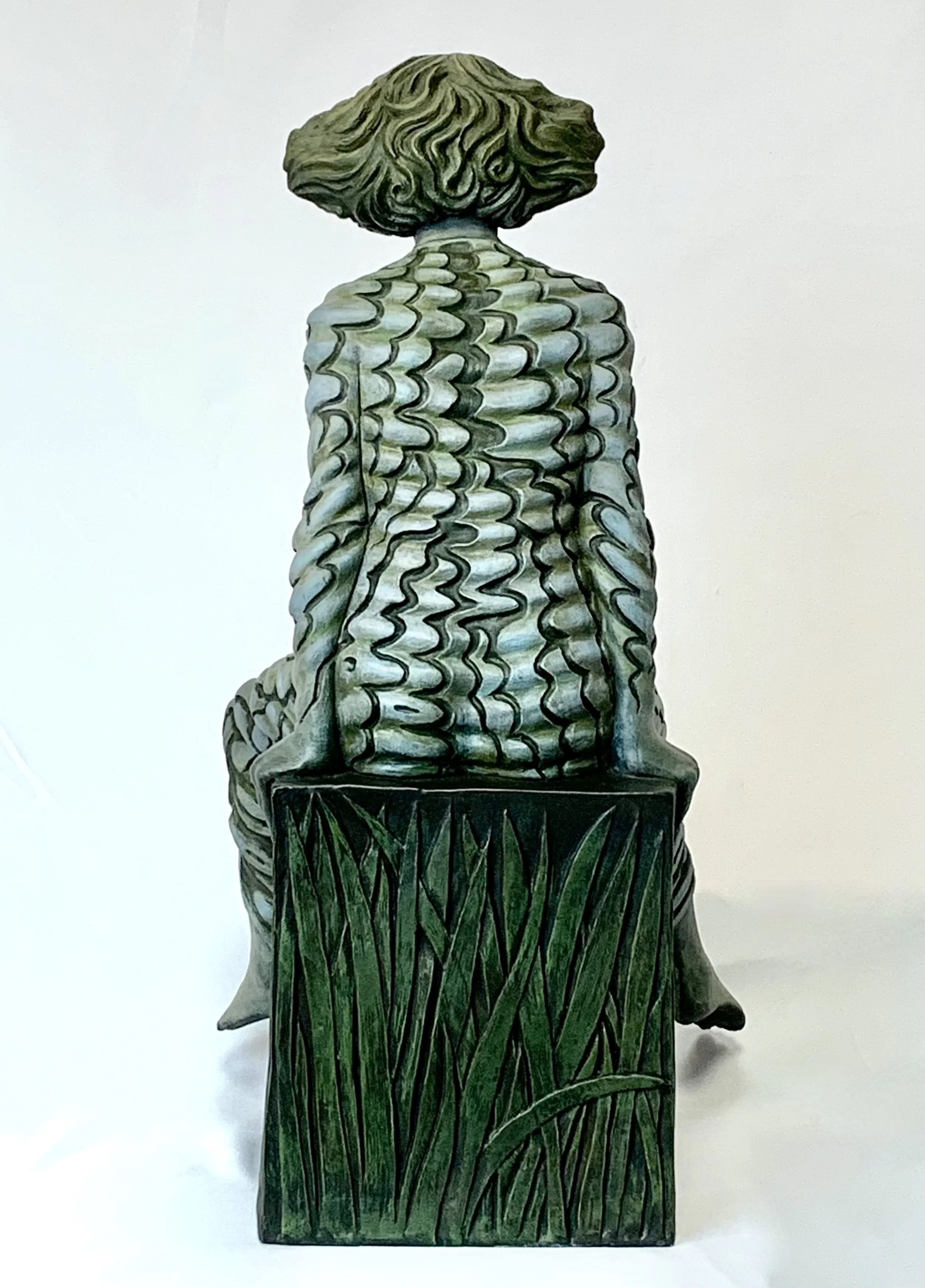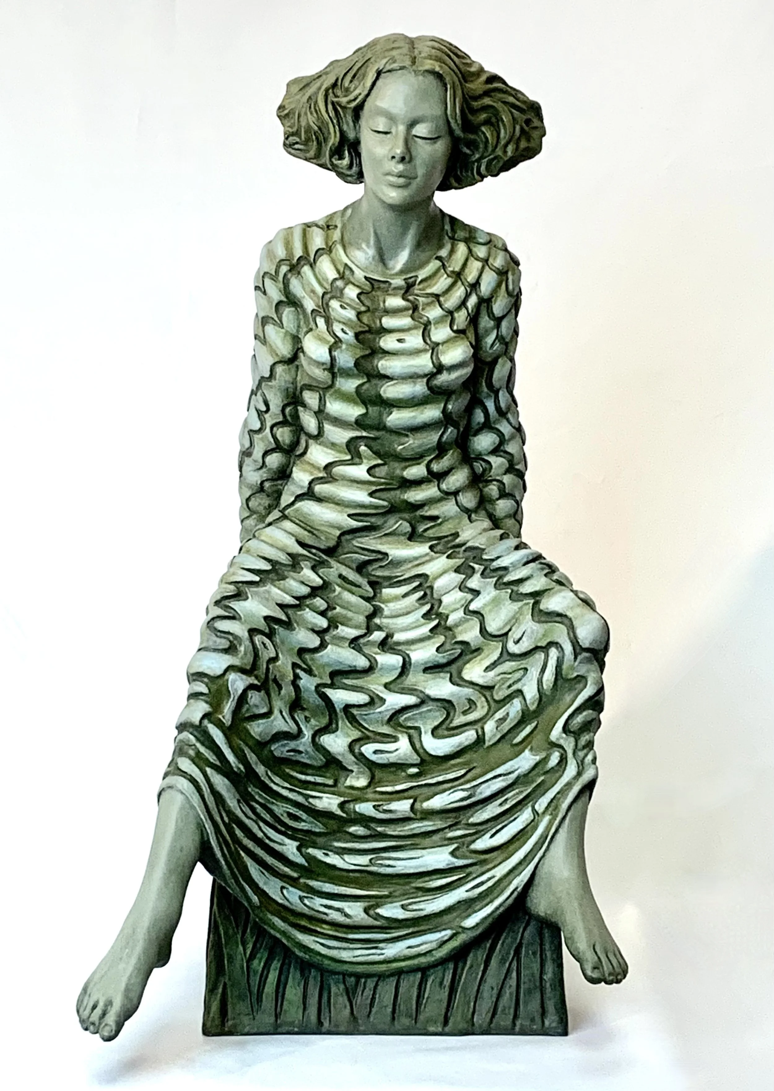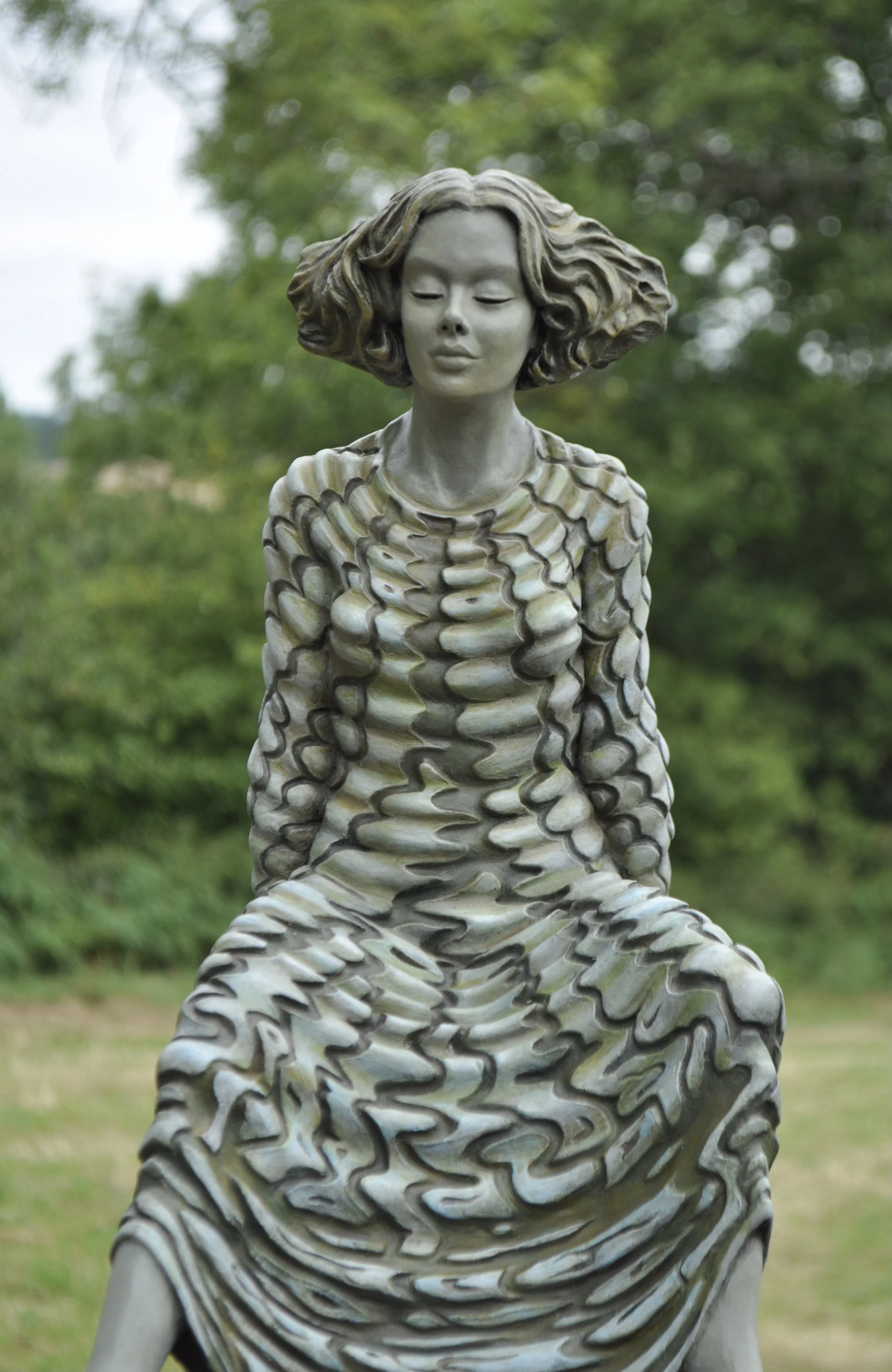 The idea of ‘Ripples’ came during a walk along the River Medway. Looking at the reflections in the water I thought to cause some ripples myself by throwing stones and taking photos. As well as those formed on the river, the ripples extended into an idea for a sculpture. An outstretched foot has perhaps caused the ripples which appear over her, a moment in time, which will gradually disappear. I have always loved the song of the same name by the band Genesis, which seems to be a metaphor for the transience of beauty and on reflection, seems to fit.